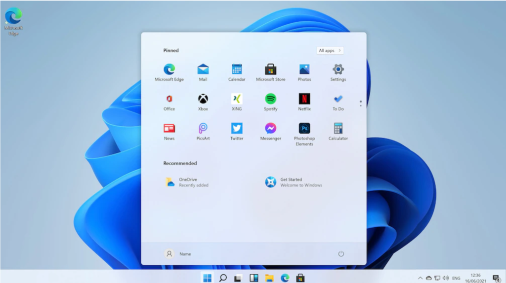Von allen neuen Funktionen von Windows 11 ist das neue, schwebende Startmenü im Stil eines Launchers der markanteste Teil von Microsofts Desktop-Betriebssystem der nächsten Generation. Im Gegensatz zum traditionellen Startmenü befindet sich das neue Menü direkt in der Mitte der Taskleiste. Es hat ein Flyout-Design mit angehefteten und empfohlenen Anwendungen, die sich gegenseitig ergänzen. Das Menü bietet einen schnellen Zugriff auf Dokumente, Fotos und Apps, die kürzlich installiert wurden.