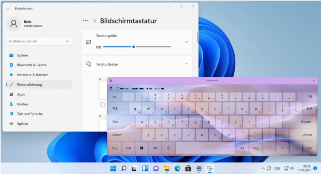 Microsoft hat den Tablet-Modus aus Windows 11 entfernt und nun eine einheitliche Schnittstelle entwickelt, die sowohl für Desktop- als auch für Tablet-Formfaktoren funktioniert. Um das Tablet-Erlebnis zu verbessern, hat die Touch-Tastatur in Windows 11 einige Verbesserungen erhalten. Dazu gehört die Unterstützung von Themes, Hintergrundbildern, die Möglichkeit zur Anpassung der Textgröße, das Tippverhalten und vieles mehr.